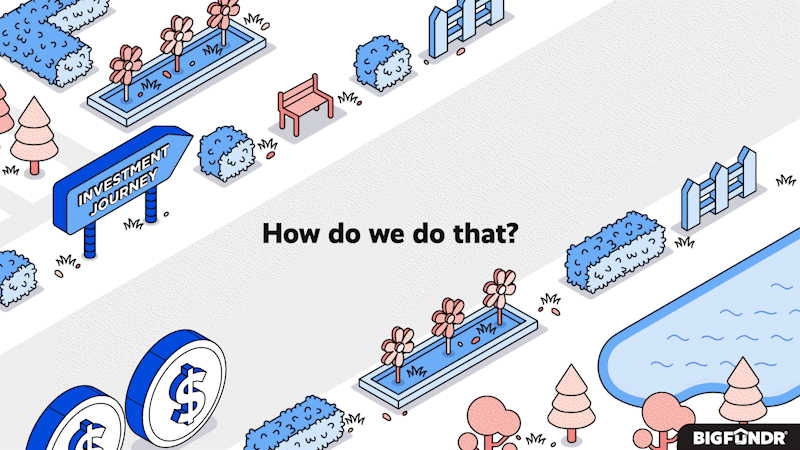 A motion graphics advertisement coined with bite-sized information about investing with BigFundr.
