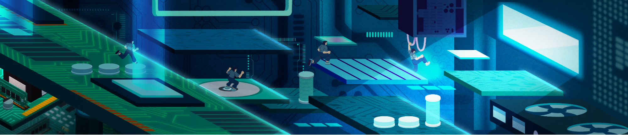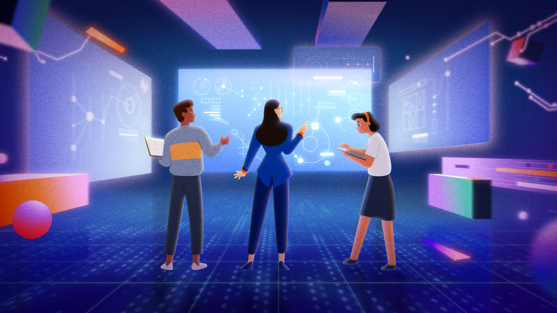 Compositing was a crucial step to make our animation feel high-tech and trail-blazing. It added energy and light pulsing through each scene.
