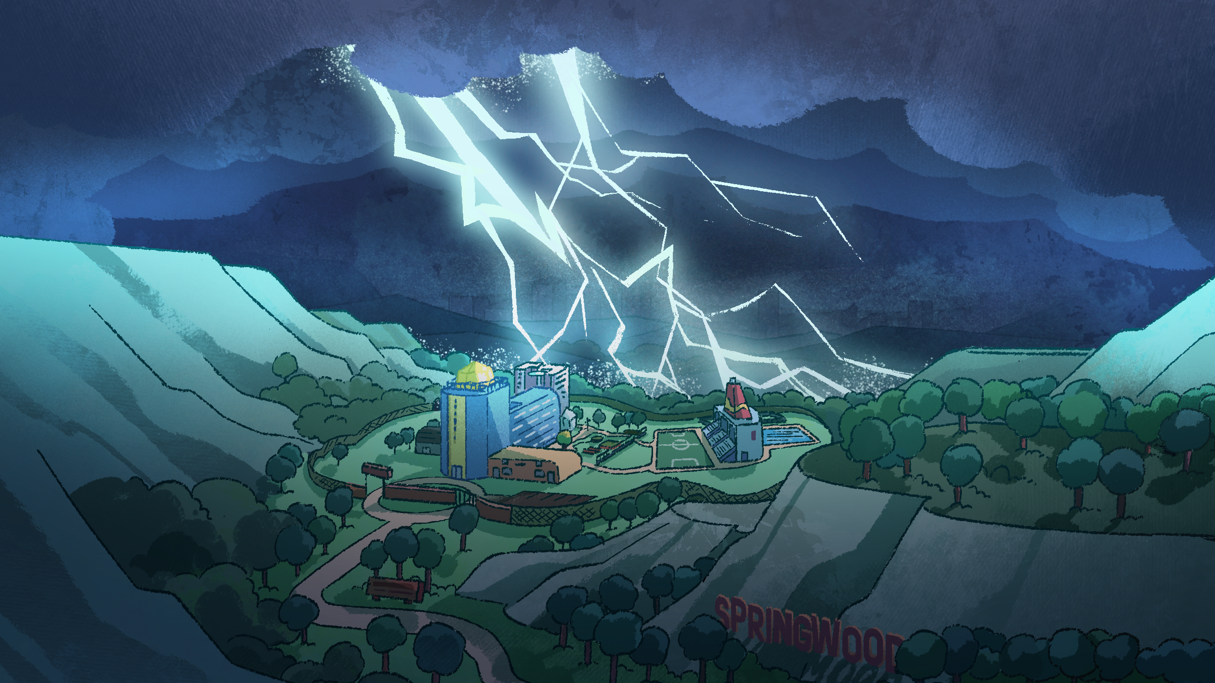 The Springwood School of Positive Outcomes, Respect, and Excellence (SPORE) is where most of the series primarily takes place. A one-of-a-kind boarding school built to handle chaos in every form, guiding rambunctious students through their most explosive years toward brighter futures.