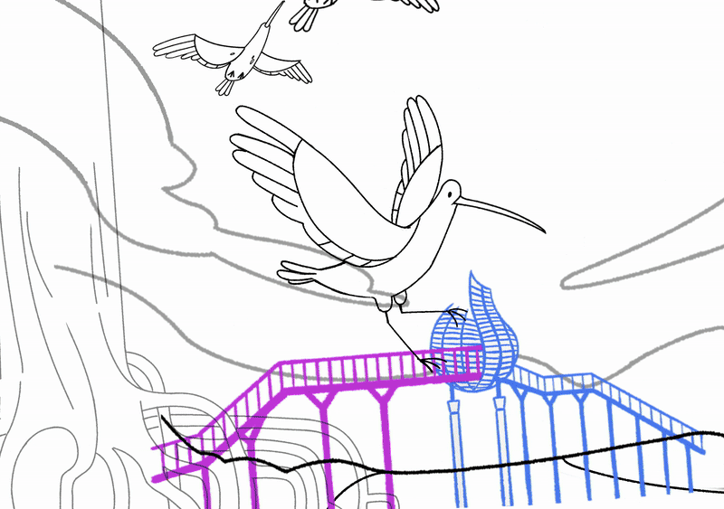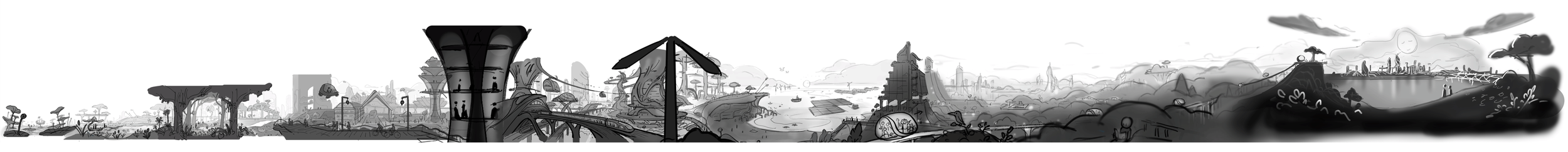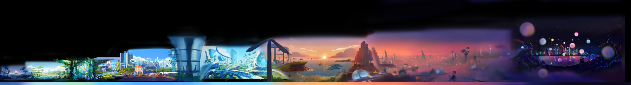 Employing an impressionistic approach in this final act, we paint a hopeful vision of the future - a City of Possibilities shaped by imagination, dreams, and potential. Combining detailed research on emerging innovations such as biophilic buildings and sustainable energy, and brought to life through illustrative world-building, each frame becomes a portal into what the future brings.