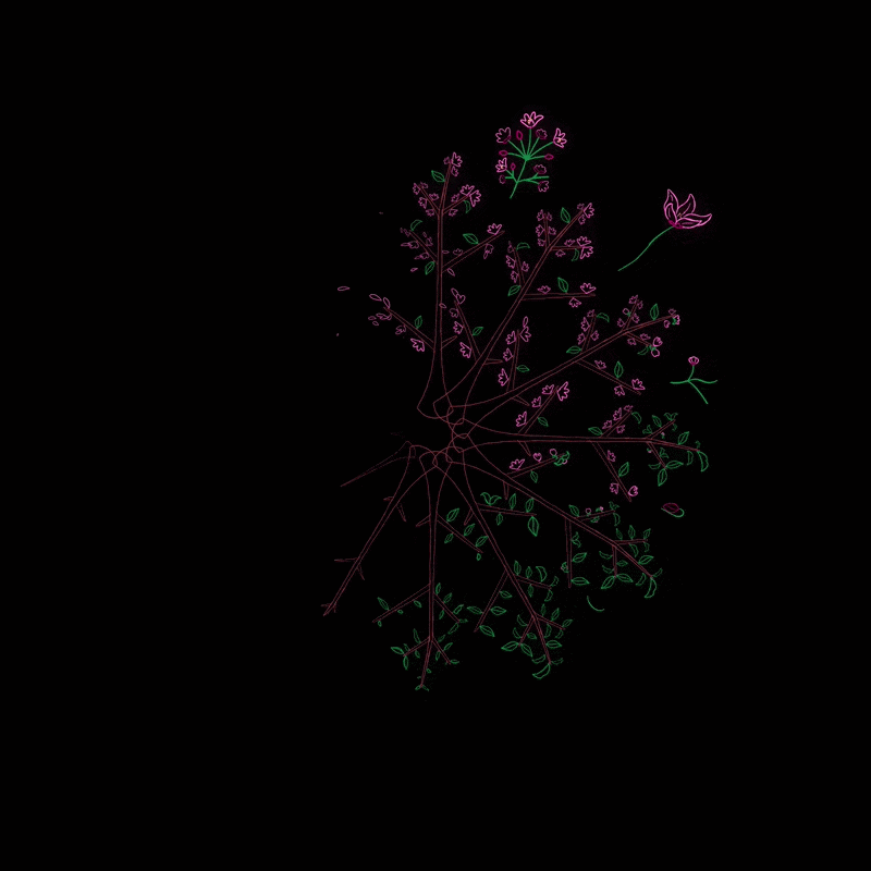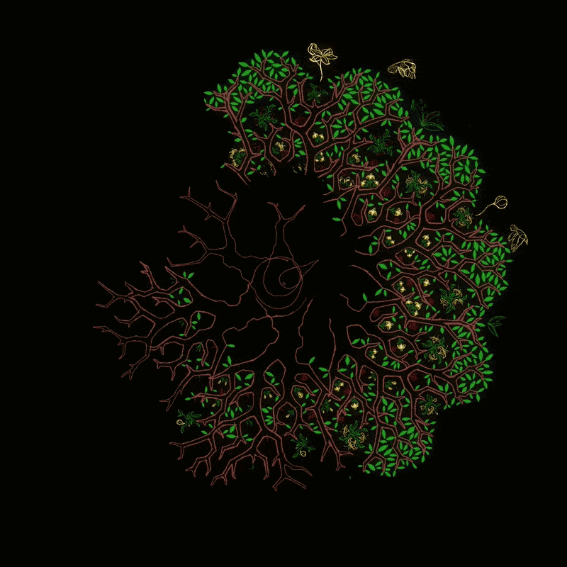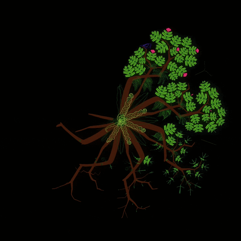 Inspired by phenakistoscope technique, each Tree consists of continuous animated loops of the specific flora and fauna that call these Trees its home. It all comes together in a seamless, continuous loop that symbolize Nature’s cycle of growth and renewal.