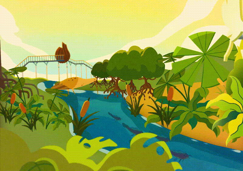 Harnessing the charm of 2D hand-drawn animation, we created dynamic, flowing movements through the wildlife’s various habitats.