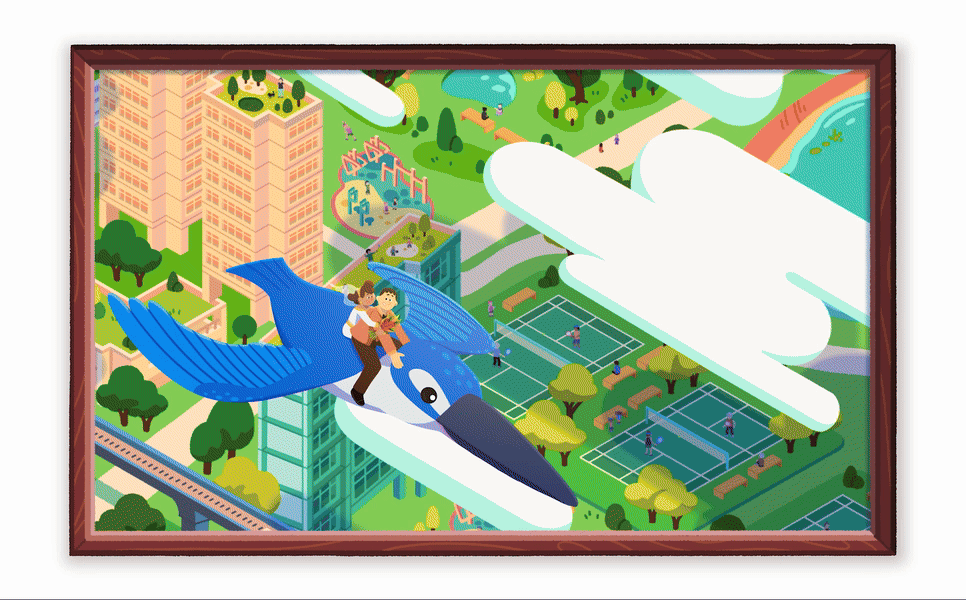 Employing a similar stylistic approach to our NDP 2021 work “The Road Ahead”, we animated larger-than-life characters set against real-life backdrops of iconic Singapore landscapes. Each scene beautifully hand drawn to life, revealed through the magic of the Dream Sphere.