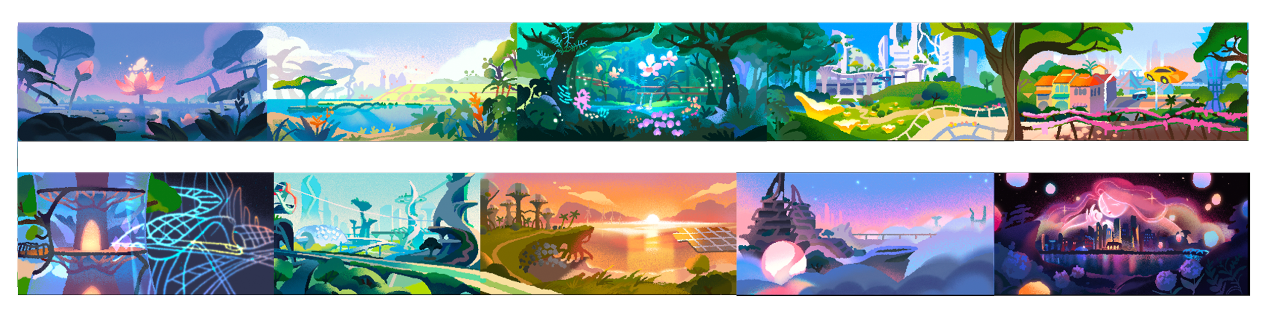 Our artists had the exciting challenge of designing the future – from transportation to architecture. We took from real-life innovations, sprinkled with doses of speculative imaginations, to imagine what tomorrow would look like.
