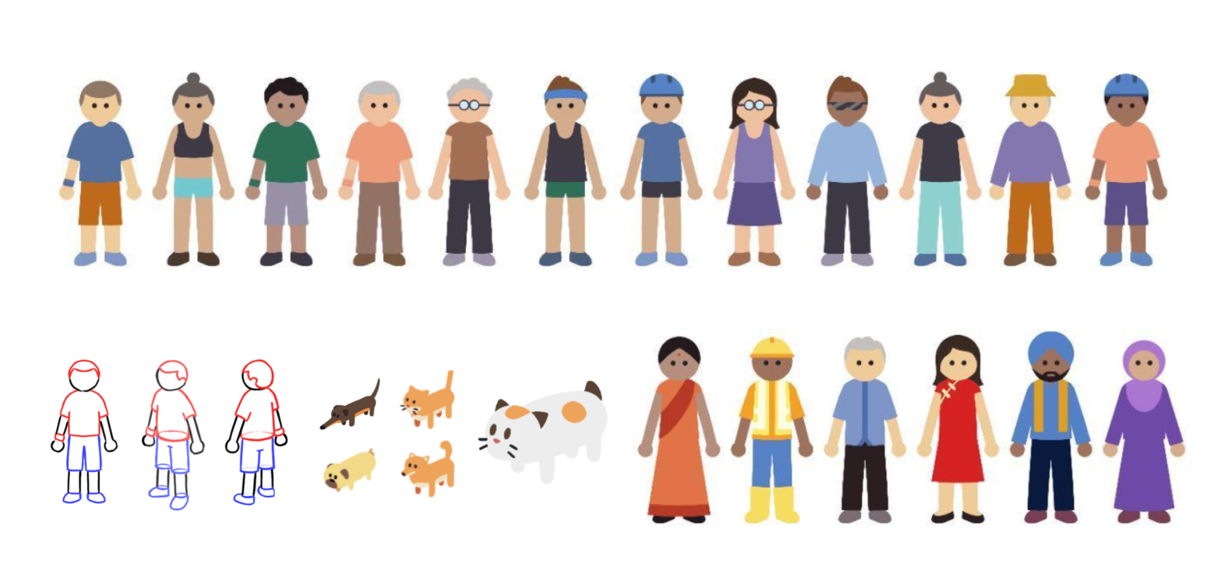 In addition to secondary background characters, we developed a “mini-figure” system - a matrix of various character design elements to create a diverse range of character designs to populate our world quickly and efficiently.