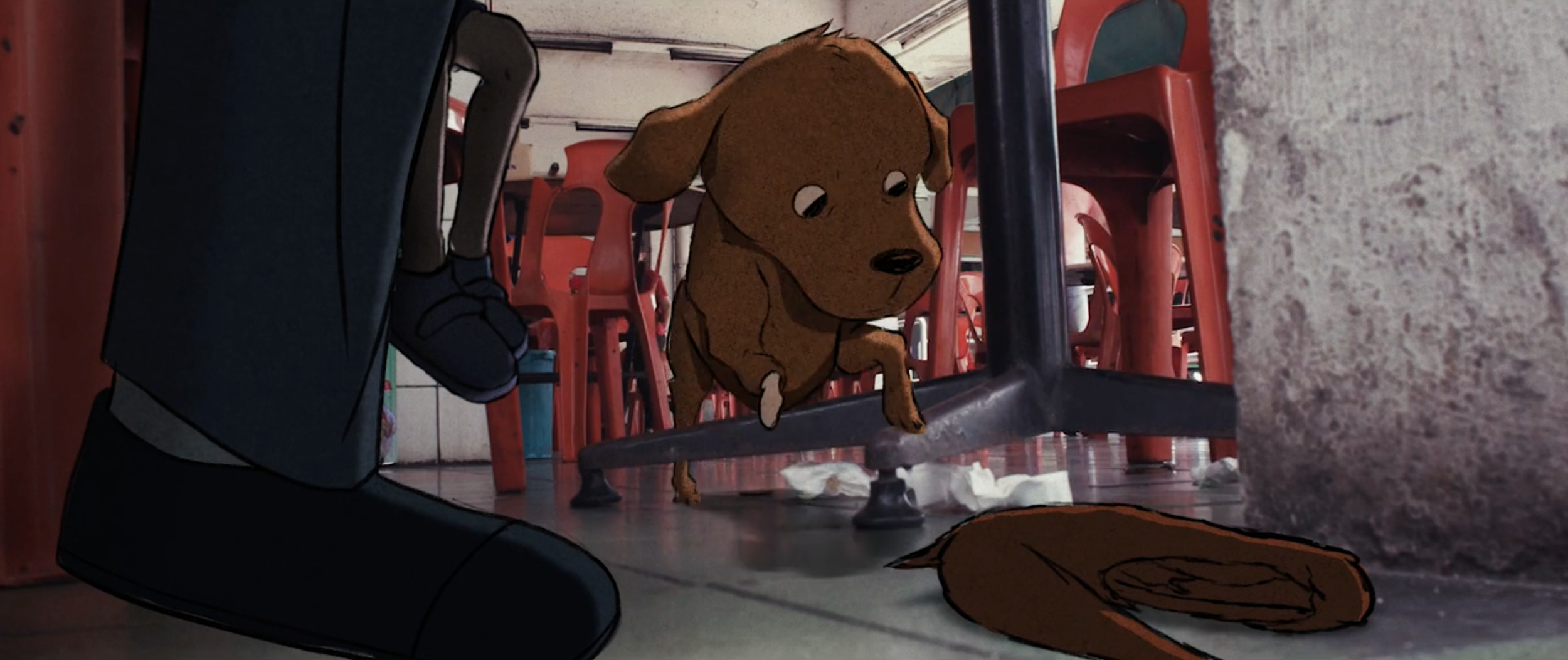 A brown dog, with a severed foreleg, struggles to survive amidst a harsh cruel human world. A film commissioned as part of 15 Shorts – Stories from the City of Good.